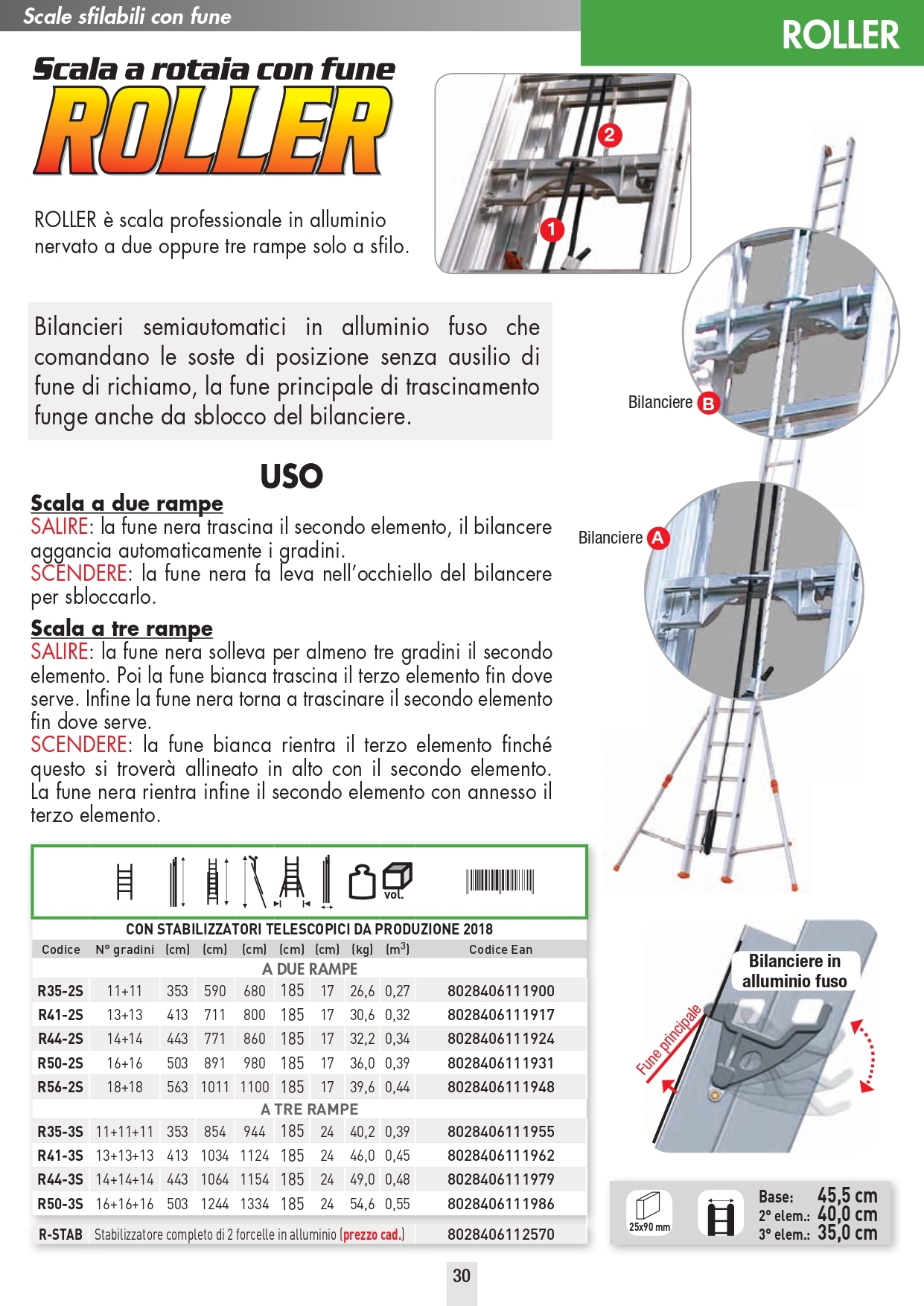 ROLLER è scala professionale in alluminio nervato a due oppure tre rampe solo a sfilo.