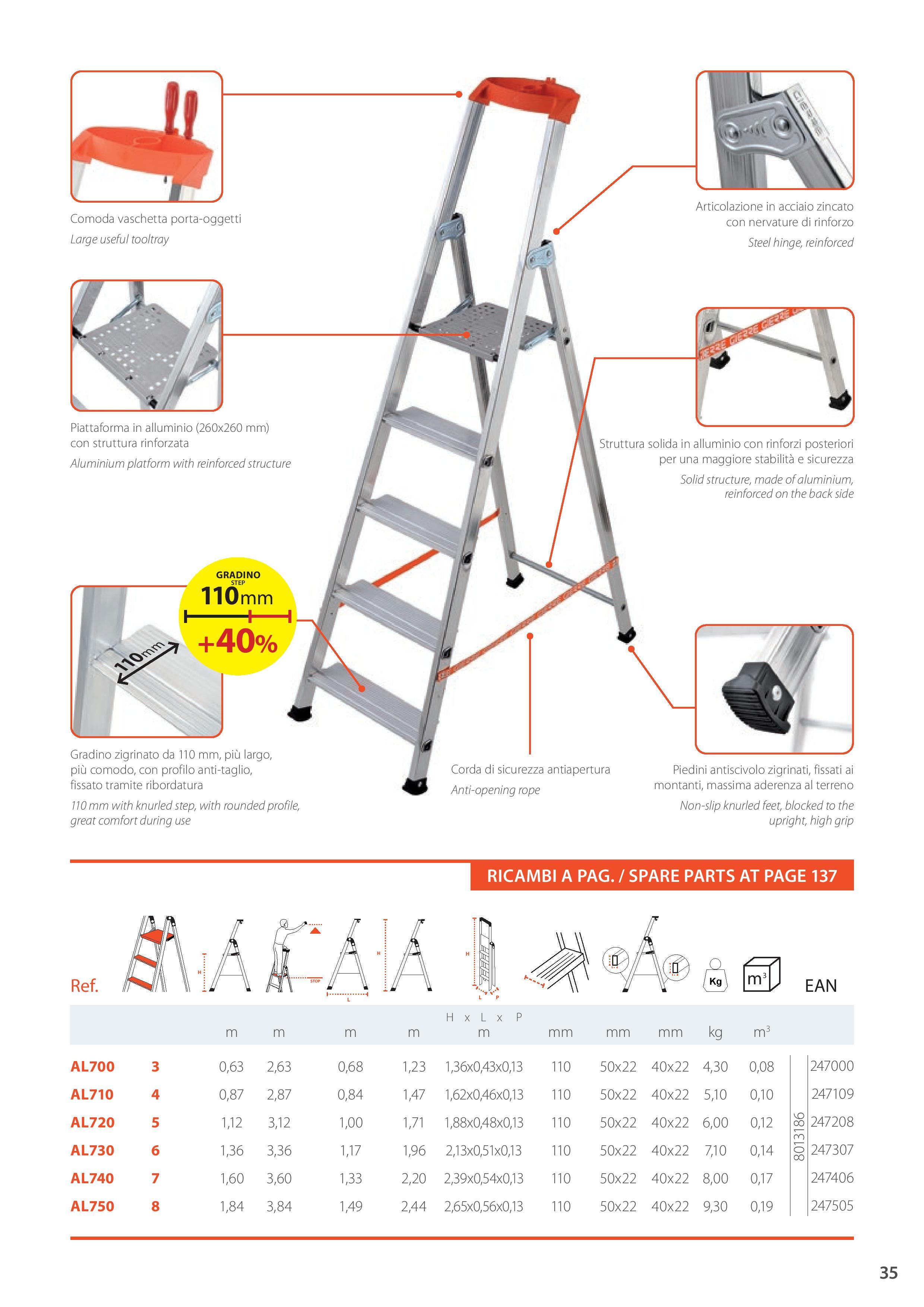 La Scala domestica Gierre Stabila ha la piattaforma (260x260 mm) in alluminio, si blocca in sicurezza con la sola pressione della mano. Il gradino è particolarmente comodo, +40% rispetto alle scale sul mercato: addirittura 11 cm!