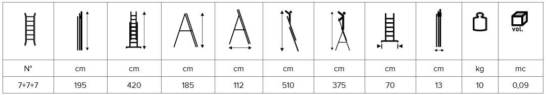 Scala componibile in alluminio a 3 rampe 7+7+7 gradini utilizzabile aperta a libro e in appoggio